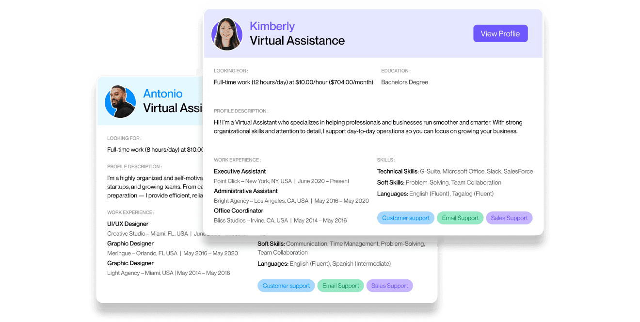 Gain a comprehensive understanding of potential candidates by reviewing their detailed resumés and engaging introduction videos. See beyond the paper qualifications and connect with their personalities, skills, and values to ensure alignment with your expectations.
